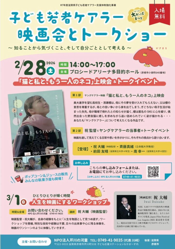 2月28日(土)の14:00~17:00に、プロシードアリーナ多目的ホールにて 大かっぱまつりを開催します! 第1部に映画「猫と私と、もう一人のネコ」上映会 第2部に祝監督と... -